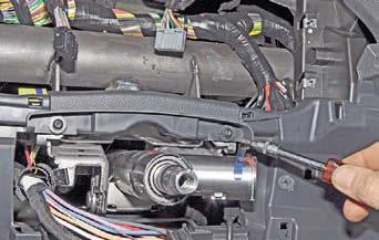 Ключом Torx T-20 отворачиваем два самореза крепления самого регулятора направления света и проталкиваем его внутрь панели приборов.
