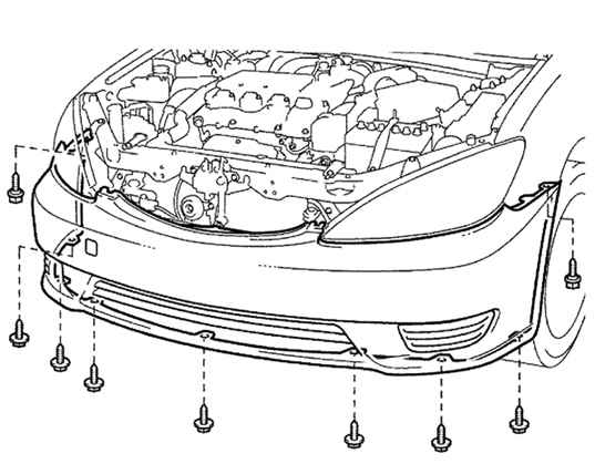 Рис. 8.25. Демонтажные компоненты переднего бампера: