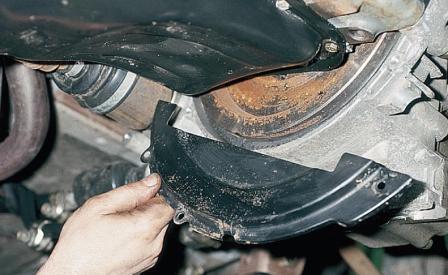 3. Снимите нижнюю крышку картера сцепления, для чего открутите три болта ее крепления.