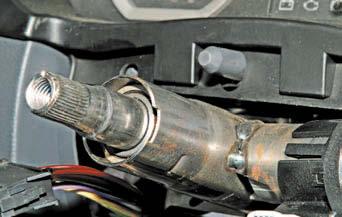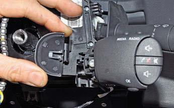 Работу проводим при замене подрулевых переключателей, соединителя переключателей с барабанным устройством спирального кабеля, а также при снятии рулевой колонки и панели приборов.