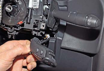 Сдвигаем соединитель переключателей с рулевой колонки.
