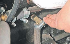 6. Ослабьте хомуты проподводящего шланга и отсоедините шланги.