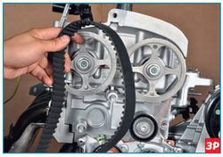 4. Устанавливаем на шкивы и натягиваем ремень привода ГРМ. Затягиваем гайки крепления шкивов распределительных валов предписанным моментом. Проворачиваем коленчатый вал по часовой стрелке на два оборота и проверяем правильность установки фаз газораспределения.