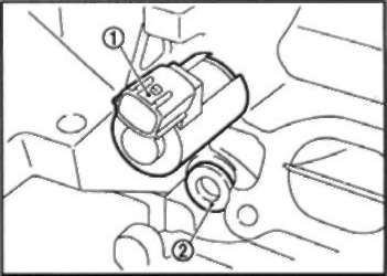 • Если Вы повернете крепежные болты звездочки распредвала в указанных условиях, то приложите поперечную нагрузку (срезывающую силу) к стопорному штифту. Это приведет к повреждению стопорного штифта и нарушению работы механизма. а. Снимите кронштейн (№1) распредвалов (1).