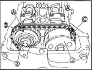 • После снятия цепи ГРМ не проворачивайте коленвал или распредвалы по отдельности, иначе произойдет соударение клапанов о днища поршней.