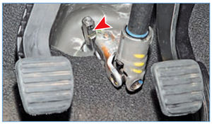 Расположение выступа кронштейна поперечной балки панели приборов (рулевая колонка снята)