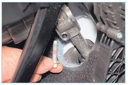 Разъединяем два хомута держателей жгута проводов и отводим жгут от колонки.