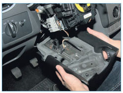 Рулевую колонку снимаем для замены при неисправности ее подшипников и деформации вала рулевого управления.
