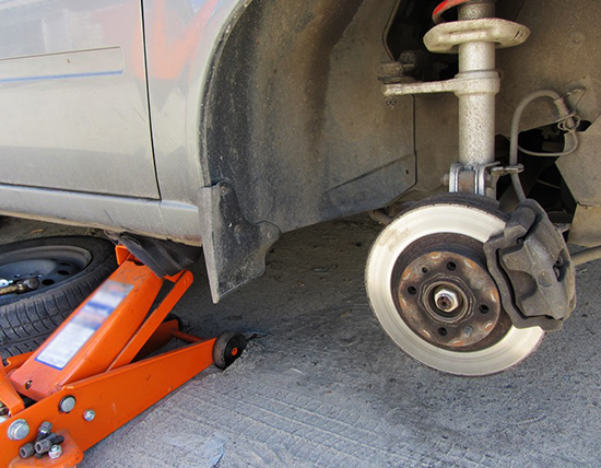 3. Поднимите переднюю часть автомобиля и снимите колесо со стороны снимаемой шаровой опоры.