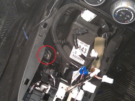 1. Опуститесь под руль автомобиля. Выведите из фиксаторов и снимите левую боковую часть тоннеля пола со стороны водителя.