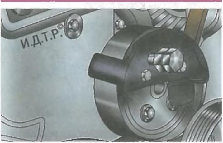 Рис. 5.6. Установка приспособления для монтажа ремня привода вспомогательных агрегатов на шкив водяного насоса
