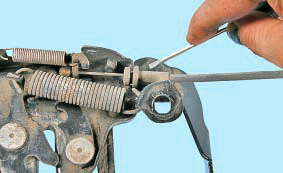 8. Установите замок капота в порядке, обратном снятию. Перед установкой замка смажьте его запорный механизм консистентной смазкой (например, литолом).