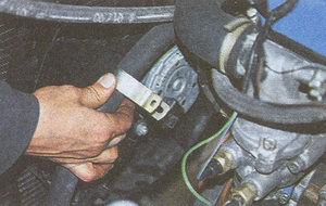1. Ключом «на 10» отворачиваем гайки двух хомутов крепления жгута проводов к каркасу радиатора и отводим жгут провода в сторону.