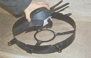 7. Снимаем кожух вентилятора со шпилек и вынимаем его вместе с вентилятором системы охлаждения.