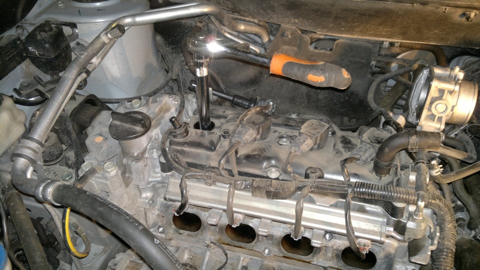 Снятие впускного коллектора и замена свечей зажигания