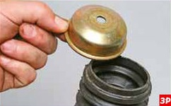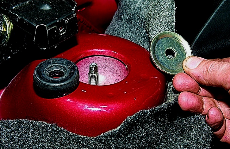 5. Снимите опорную шайбу и верхнюю подушку амортизатора.