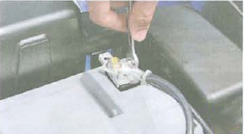 4. Подняв защитный колпачок, таким же образом снимаем клемму с положительного вывода АКБ.
