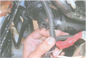 18. Выводим жгут моторных проводов из держателя, который расположен в передней части впускной трубы.