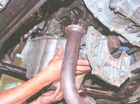 3. Снимаем приемную трубу системы выпуска отработавших газов с выпускного коллектора.