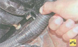 18. Нажав на фиксаторы снимаем шланг вакуумного усилителя тормозной системы с выпускного коллектора.