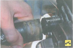 25. Слева выкручиваем болт крепления кронштейна радиатора системы охлаждения двигателя.