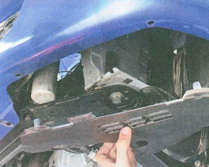 3. Снимаем два нижних брызговика двигателя, как описано здесь.