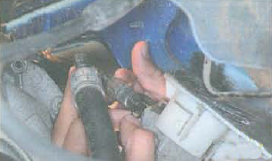 19. Приподняв двигатель, отодвигаем рулевой механизм вправо.