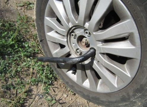 20. Извлекаем рулевой механизм через арку правого переднего колеса.