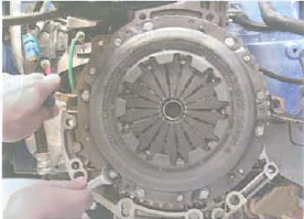 Ведомый диск устанавливается таким образом, чтобы выступающая часть дисковой ступицы была обращена в сторону диафрагменной пружины кожуха сцепления.