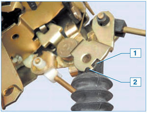 Поворачиваем пластмассовый фиксатор, освобождая тягу блокировки…