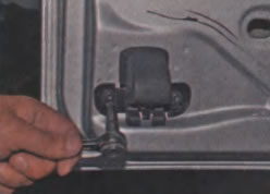 7. Аналогичные операции проводим при снятии верхнего замка двери. Для снятия привода замков снимаем обивку левой двери багажного отделения. Снимаем очиститель стекла левой двери багажного отделения.