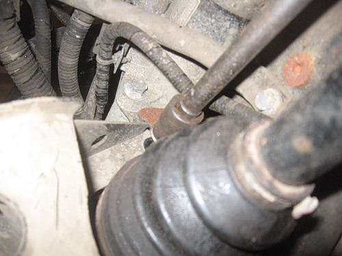 Домкрат из под лонжерона можно убрать, двигатель жёстко сидит на других подушках и никуда не денется. Далее откручиваем пробку рулевой рейки (просто пробка)