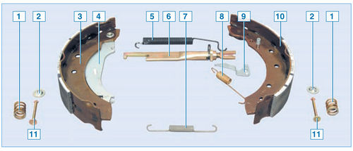 Тормозной механизм заднего колеса — барабанный, с двухпоршневым колесным цилиндром и двумя тормозными колодками, с автоматической регулировкой зазора между колодками и барабаном.