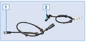 Датчики скорости вращения переднего 1 и заднего 2 колес