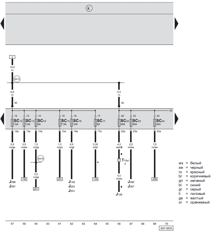 Отопление, блок предохранителей Skoda Octavia 2004 - 2012. Схема 2