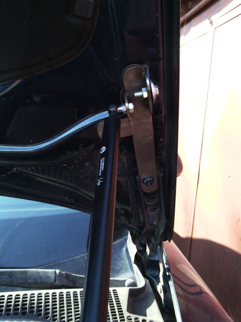 Как только оформлю по приличней нижний кронштейн, натру алмазной пастой до идеального состояния. После установки проверил, как работает, все отлично, капот не топорщится, амортизатор никуда не упирается и даже не касается корпуса воздушника.