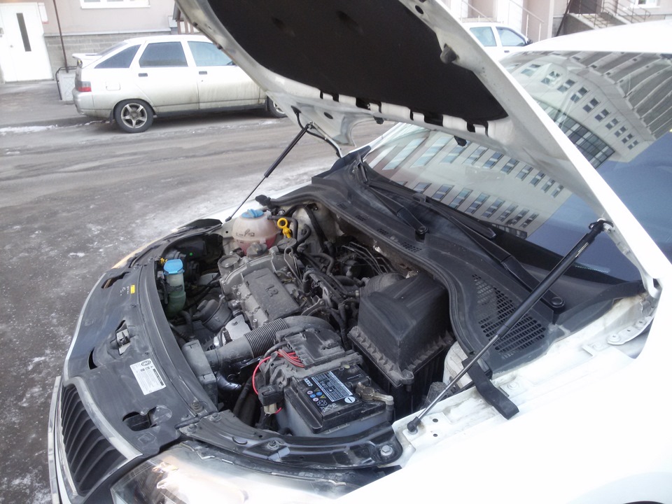 1. Выкручиваем один штатный болт на 10мм около фары с двух сторон и закручиваем шпильки под газовый упор.