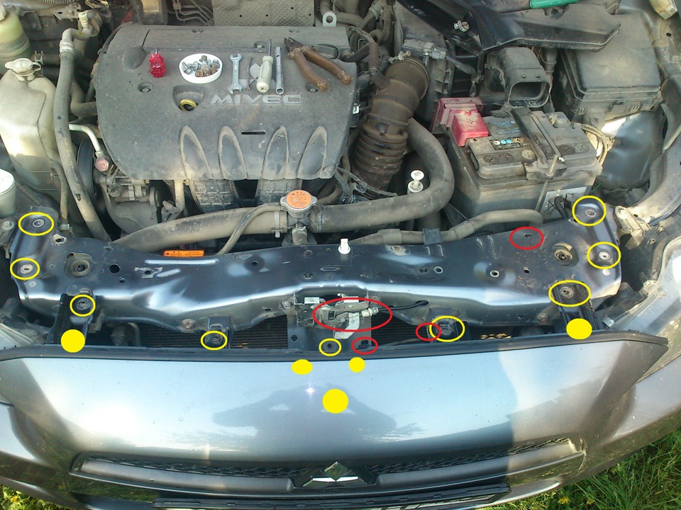 Замена лампы ближнего света Митсубиси Лансер X