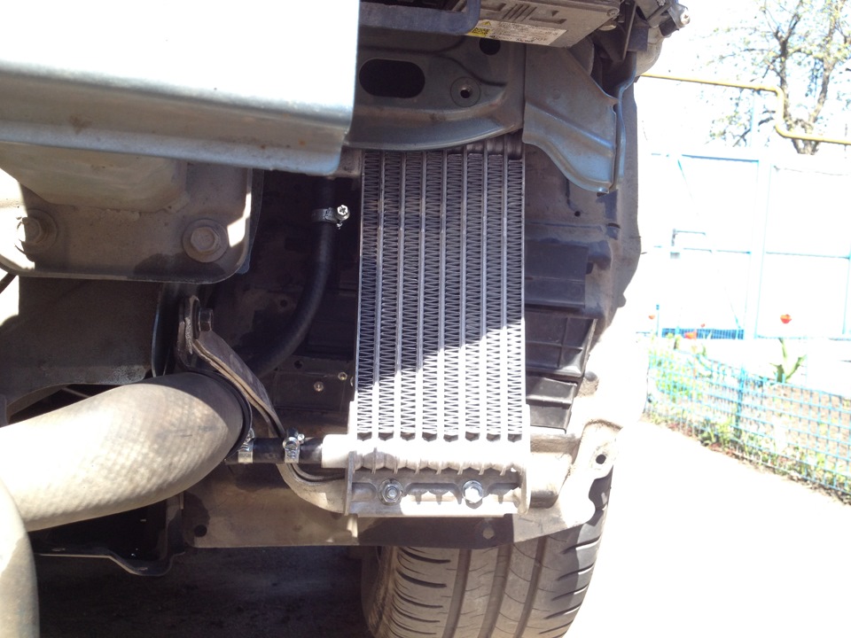 1. Поднимаем машину, и снимаем передний бампер, под ним будет радиатор вариатора.