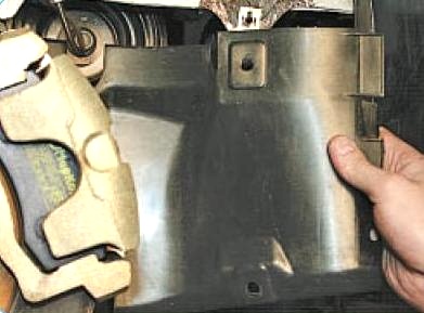 5. Выверните отверткой с крестообразным лезвием один винт крепления правого грязезащитного щитка к подкрылку и два винта его крепления к кузову.