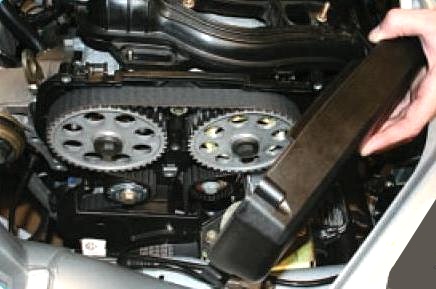 Выставляйте ВМТ такта сжатия по меткам на шкивах распределительных валов (при установке по меткам на маховике или шкиве коленчатого вала в этом положении может находиться поршень либо 1-го, либо 4-го цилиндра). После этого обязательно убедитесь в совпадении меток на маховике либо на зубчатом шкиве коленчатого вала (если снят шкив привода генератора). Если при этом метка на маховике или шкиве коленчатого вала не совпадает, значит, нарушена установка фаз газораспределения (поршень 1-го цилиндра не установлен в ВМТ). В этом случае необходимо снять ремень привода распределительного вала и провернуть коленчатый вал до совмещения меток.