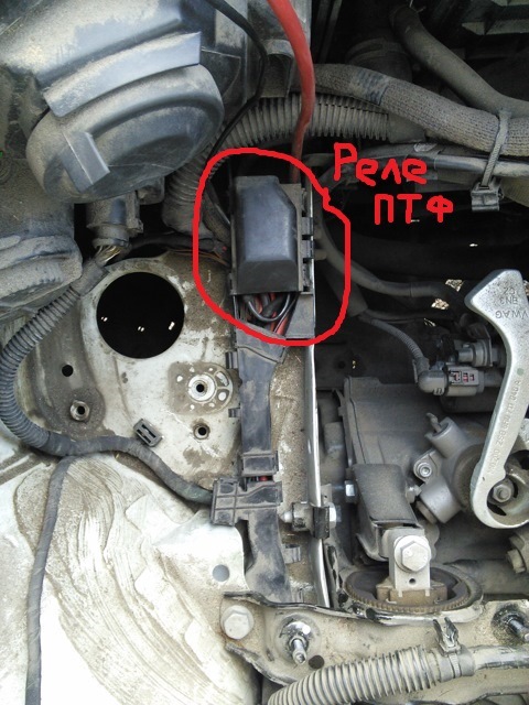 1. Провод "+" от левой птф длинной около 50 см идёт к реле на 30 контакт и скручиваются с проводом "+"правой ПТФ.