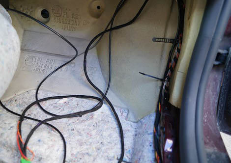 6. Вдоль правого порога протяните жгут проводов к магнитоле.