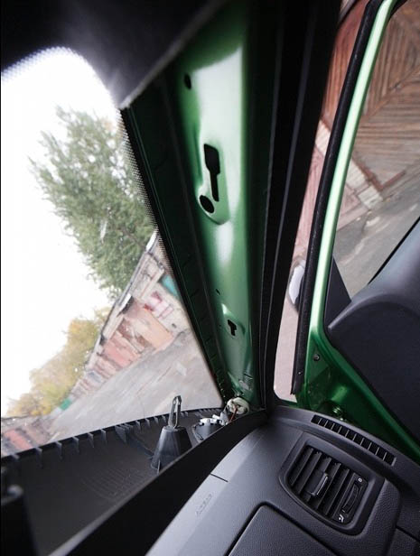 3. Снимите панели стоек и порогов. Удобнее снять пластик с центральной стойки тоже, но можно обойтись и без этого. Обратите внимание на расположение пистонов.