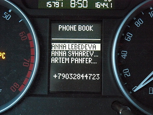 2. После этого, пояляется меню телефона на Maxi-Dot в области магнитолы. При первом подключении идет считывание телефонной книги, входящих/исходящих звонков. Кирилица не отображается. Телефонную книгу в Вашем устройстве нужно будет перевести на латиницу.