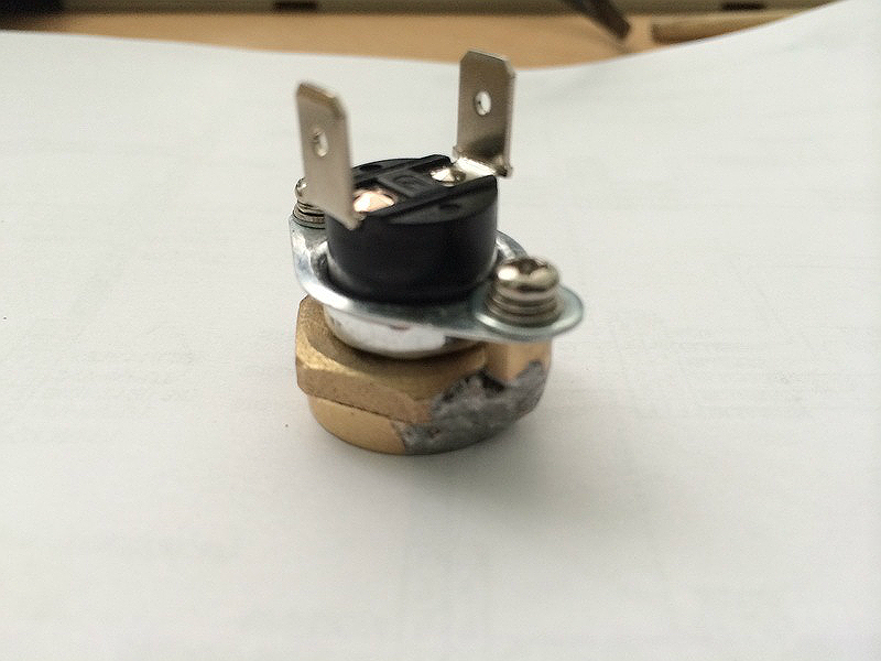 1. С помощью холодной сварки прикрепите термореле к заглушке электромагнитного клапана.