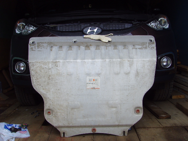 С завода на автомобиле Hyundai ix35 стоит не полноценная защита картера, а защита пластиковая противопыльная (антигрязевая). Необходимо устанавливать полноценную металлическую защиту двигателя на Хендай ix35.