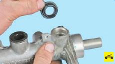 - Дальнейшие операции для наглядности показаны на главном тормозном цилиндре, снятом с автомобиля.