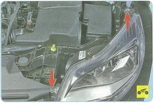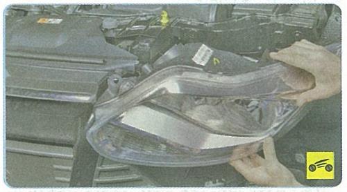 Операции показаны на автомобиле с кузовом хэтчбек. Снятие и установка блок-фары на автомобилях с кузовом седан и универсал выполняют аналогично.