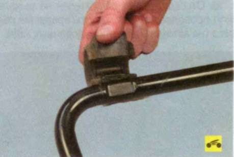 7. ...и снимите скобу крепления штанги стабилизатора.